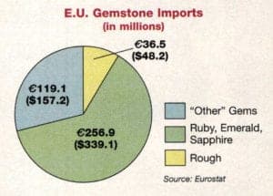 While "other" gems account for less of the gem trade in Europe, the category is on a strong growth tend: "Other" gem imports into the European Union increased by 21 percent in 2006, compared to only 3.3 percent for ruby, emerald, and sapphire.