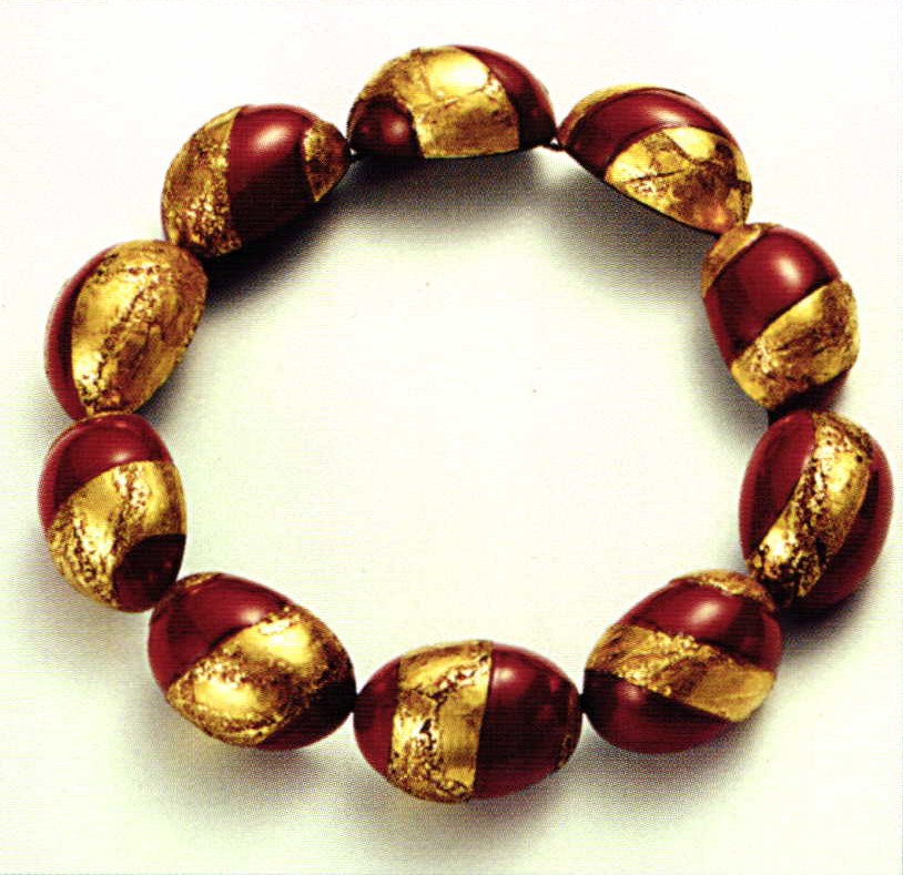 In 1990, Nagar left two-dimensionality behind and gave priority to exploring geometry and architecture. Long before she began developing her "tube jewelry," she had been fascinated by iron and concrete tubes and pipes she discovered out in the landscape, and in the garden, had found inspiration in the calyxes of dahlias. A long process of taking form resulted in rings, brooches, bracelets, and necklaces made of many tiny tubes and flat rings soldered together. Erico Nagai sometimes accentuates her small compositions with stones, pearls, or enamel. For her long neck chains, flat rings are added one after the other; the various ways of wearing the necklace give it a constantly changing appearance. The tubes, made from a single gold plate, overlap and cover one another to create jewelry pieces that evoke Gothic tracery or Middle Eastern breakthrough work as well as the outlines of leaves and flowers or abstract crystal structures.