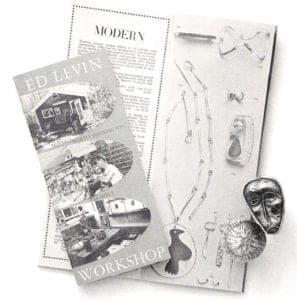 Upon his return to New York, about a year later, Levin became a fulltime craftsman, making jewelry and ceramics in the bedroom alcove of his railroad fat beneath what is now Lincoln Center. But, always having been a nature lover, Levin found the peace and inspiration of the country lacking in his life. Therefore, drawn by the rural beauty of Vermont, he moved, in 1953, to Shaftsbury, near the North Bennington town line, where, in an attic, he and his wife Ruth set up a jewelry studio. He worked with Ruth alone, until, in 1958, he hired an apprentice (Charles Thompson), who was to become the foreman of the Ed Levin Arts Workshop in Bennington Village in 1964.