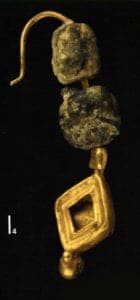 The goldsmith work from the eastern city of Kanopos was dispersed over a large area. The same is true of coins and seals, stretching back to the Roman and Umayyed era, manufactured mainly from between the 6th and early 8th AD centuries. More precise dating is only possible through comparison with dated goldsmith work from a Byzantine Empire and from outside. It is interesting that in terms of motifs and technical workmanship, Byzantine jewelry from the 6th to the 7th centuries AD reveals significant similarities. For example, a chain from the 6th century, originating from the workshop in Constantinople, cannot be distinguished from a chain manufactured at the same time in a different workshop within the Byzantine sphere of influence. Some forms of jewelry are found everywhere that the Byzantines left their traces. A good example of this is found in the crescent moon-shaped, broken-down earrings, but also in pendants and necklaces.