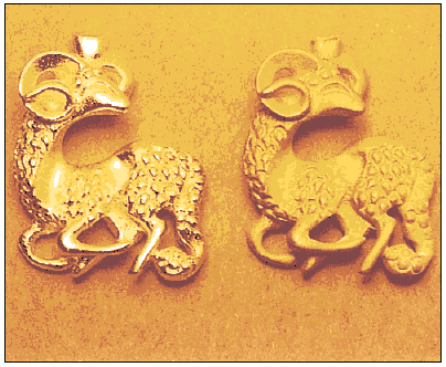 Figure 9 - a) Electropolished jewellery: as cast 14 ct gold (right) and