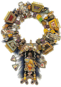 | Necklace by Wolfgang Lieglein, 1990/91. Papier máche, fabric, glass stones, plastics, metals, wood |
