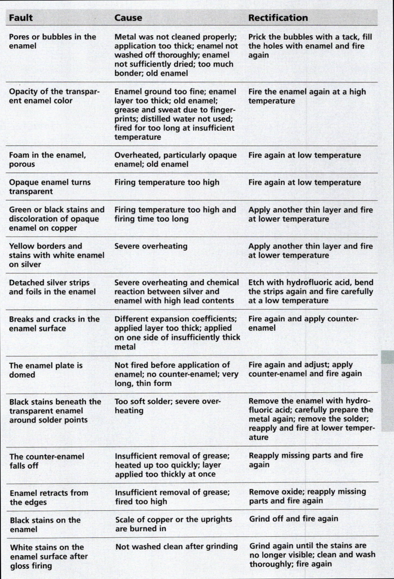 The examples listed below are attempts to rectify faults. However, sometimes all effort is in vain and the enamel work cannot be saved, despite all the tests. In this case, we must resort to the last means and completely remove the enamel. As this is only possible using aggressive hydrofluoric acid, it should remain the absolute last resort.