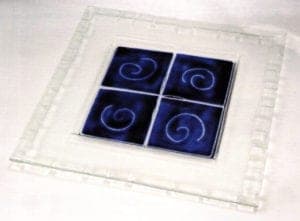 The books I had on working with warm glass turned out to be rather old-fashioned and they were not very inspiring either. So I began searching the Internet for more know-how and ideas, and I joined a glass group at our local free academy. I started out with blank glass, salvaged from the rubbish container into which all the debris of the building was deposited. I had saved some of the old glass from the doors to my studio, which I used to make some plates and bowls and a standing object from this, which gave pleasant mementos of the situation before the renovation.