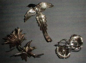The attention to detail contributes to the very luxurious appearance of the finished objects. This extends to the working of the backs. For pendants and neckpieces, the unseen sides as well as the more visible gold or silver forms and mounts are left with a semi or high polish, making the pieces smooth and pleasant to the touch. For insect-shaped brooches, the undersides are completed to show the tiny legs of each creature tucked neatly under the fixing pins. To strengthen delicate forms, a gallery is soldered to the underside, contours of the metal. The hinges and worked as a narrow openwork strip, following the other accoutrements for fixing pins follow the same principles of strong construction and correct alignment. Fixing pins for brooches are angled to ensure each piece 'sits' well at an angle to catch and reflect light. If appropriate, twin pins are used to balance larger brooches in wear. This helps to make the pieces both flattering and comfortable to wear, and contributes to the durability of the jewelry.