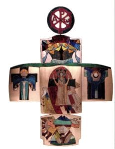 The art director of our studio is the painter, Endre Turi, who has been experimenting with a new method of enameling on copper for two years. (Before that most of his works were sculptures in the round with cloisonné and enameled iron plates.)With the new technique new possibilities open up in the transparent enamel. Our Lady's Rebirth 5, see page 39) show different colors in all periods of the day depending on changes of the light. We hope to be able to come back to Endre Turi's art in detail in a later issue.