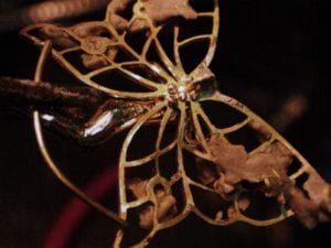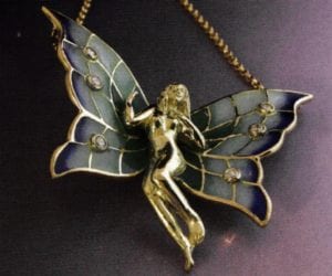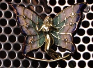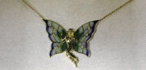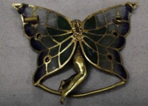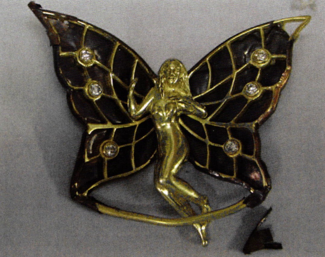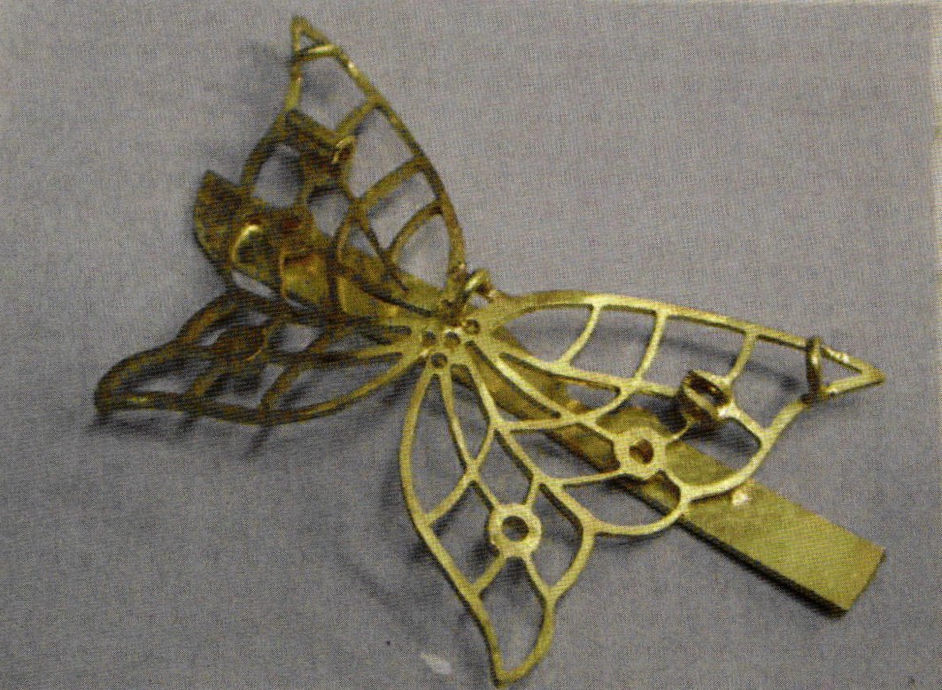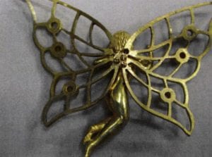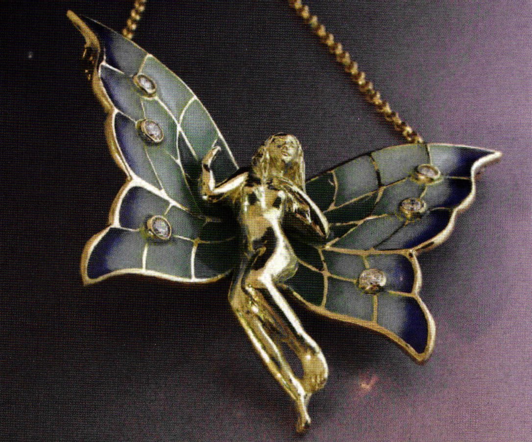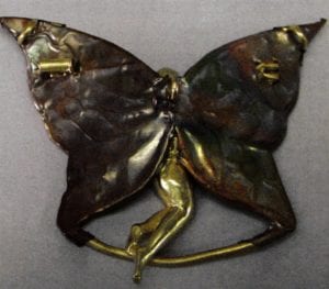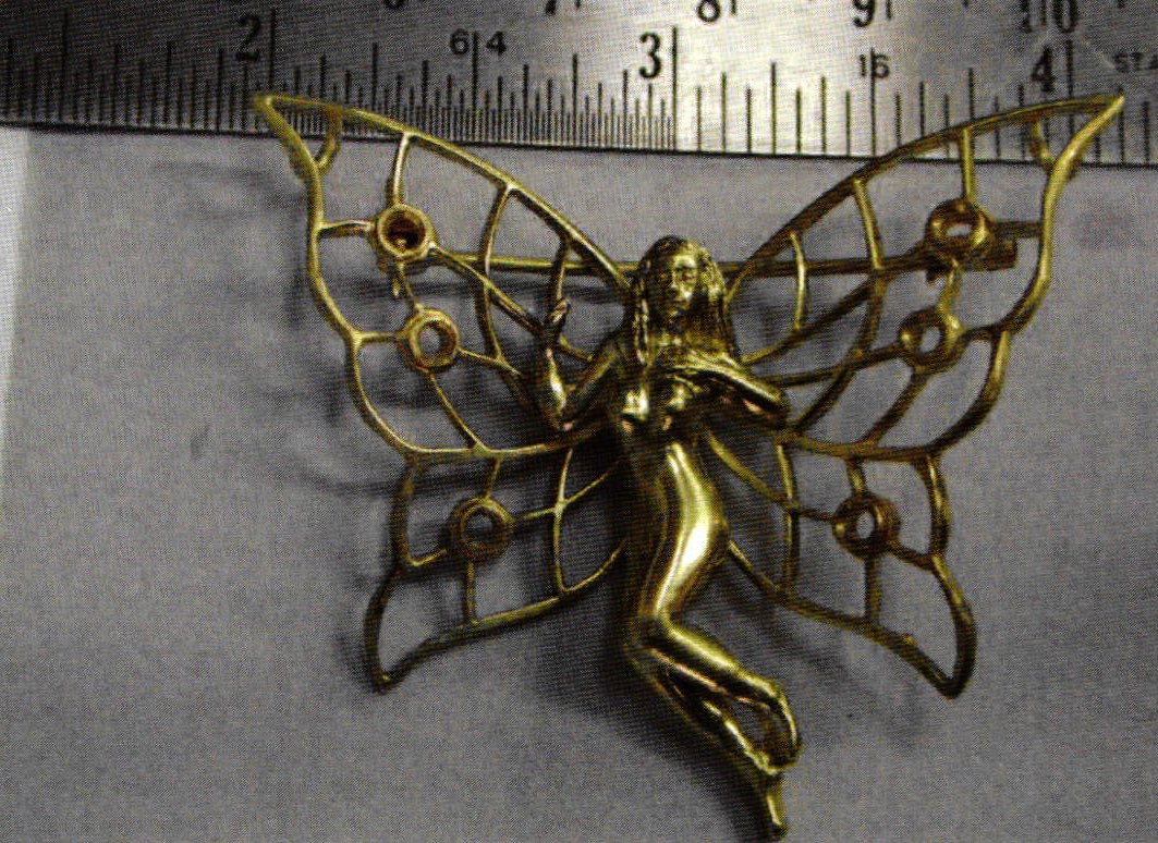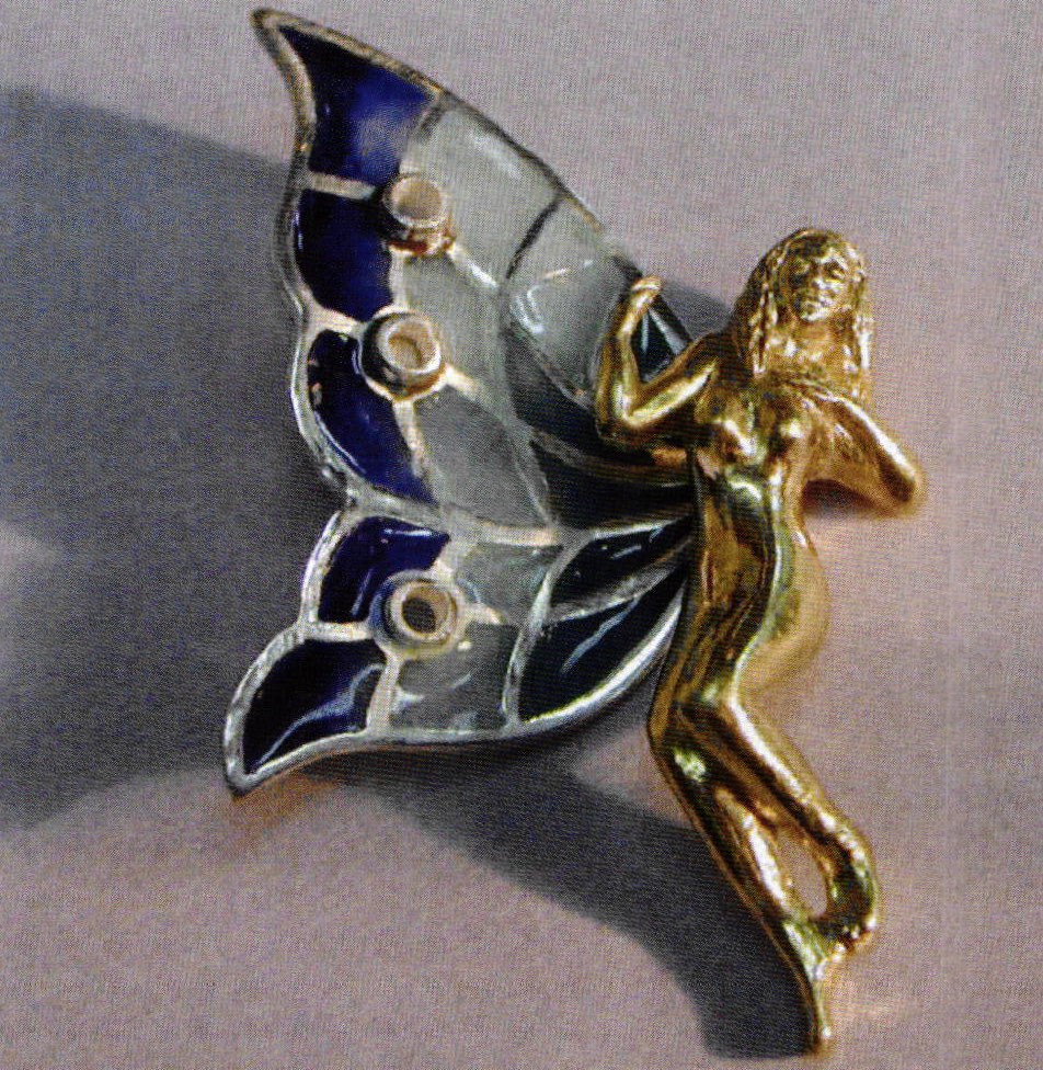 Fig. 10 If you look at the final picture of her wings, you will see that they are not the same as this test wing. The reason for this extra effort is the gold wings must be soldered to the body, then enameled, so there is only one chance to get the enamel right. Therefore, it is much easier to make a sample wing and mess it up and not ruin the whole piece.