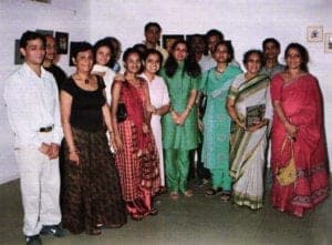 In order to take full mileage from the efforts, the two senior artists and teachers, Veenu Shah and Vivek Das, exhibited their new works for a week from 11th to 17th April 2004 in the same gallery. They have also experimented with new techniques and ideas. Veenu introduced some new concepts. She enameled copper foil on both sides and framed then pressed between plexiglass. They become great dividers. Some architects found them fascinating!