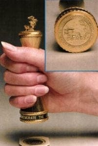 As for most of the trades connected with jewellery and display objects, where the finished objects depends on the skills of several experts, individual names are seldom known outside the makers' circles, and only the retailers' trade marks are added. For many of his pieces, therefore, Alan Mudd has worked in collaboration with goldsmith-designers, adding enamels to such objects as table clocks and exhibition pieces. Extraordinary pieces too are made: such as enamelled silver peacocks and flamingos, in life sizes, commissioned by the London firm of Garrards in the 1990s. For such commissioned ornamental work the sketches and drawings supplied by the designer must of course be interpreted to suit the enamelling process, and to give the optimum effects with these materials. Another mainstay of the workshop is the making of Masonic, stately and military insignia, requiring the use of precise heraldic colours. In the craft traditions, copies of earlier pieces are also made to commission, and these have included picture frames in the Fabergé style as well as decorative Easter eggs, etc. Importantly, Alan Mudd also creates outstanding pieces to his original designs, such as sets of chessmen, for which he adds his own mark. For commissioned work he now concentrates only on specially selected pieces.