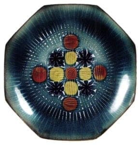 While Doris Hall's vibrant designs undoubtedly exerted a strong influence on her student's earliest enamels, over time Davidson's work became more simplified, her colors more subdued and serene. In this sense, her spare designs were closely aligned with the work of her contemporaries in California including ceramists Laura Andreson, Harrison McIntosh, and Rupert Deese and enamelist Elizabeth Madley. According to Davidson, she was not aware of these artists at the time. However, the overall simplicity of her shapes, the combination of geometric and organic form in her designs, and the subtlety of her color palette all ally her work to the California 'modernist' aesthetic. While Davidson began her training in Boston, her sensibilities were definitely those of a Californian.