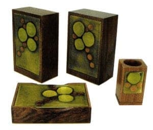 Annemarie Davidson has frequently collaborated with fellow artist Blaine Rath since 1959. Rath makes beautifully-crafted boxes in a wide variety of woods, especially walnut, maple and rosewood, in which Davidson mounts her elegantly proportioned enamels. Over her immensely productive career, Annemarie Davidson has developed a consistent but constantly varied body of work - work characterized by continuous innovation in form and content.