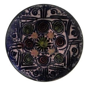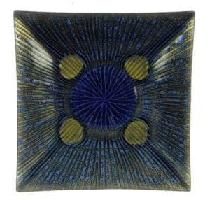 Active as an enamelist since 1957, Annemarie Davidson has made functional objects - from plates and boxes to ashtrays, trivets, desk sets and bookends - for over fifty years. The artist works in a studio in her home in Sierra Madre, California, a small residential community east of Pasadena. Throughout her long and richly productive career, Davidson has created forms intended for everyday use which she decorates with either spare abstract patterns or representational subjects. Davidson's "jewels," her most highly regarded enamel designs, are largely abstract, evoking simplified natural forms, without specific reference to any particular subject in nature.