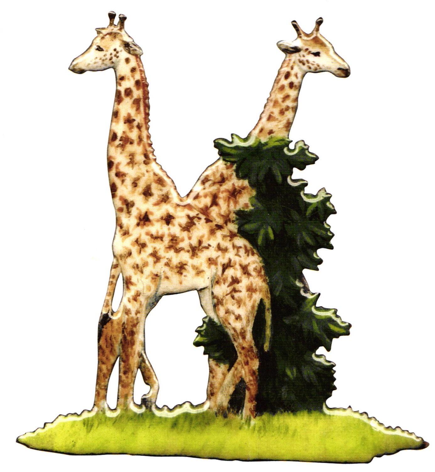 "Giraffes," enamels over copper with over glazes, "English Springer flushing a quail," enamels over copper with over glazes.