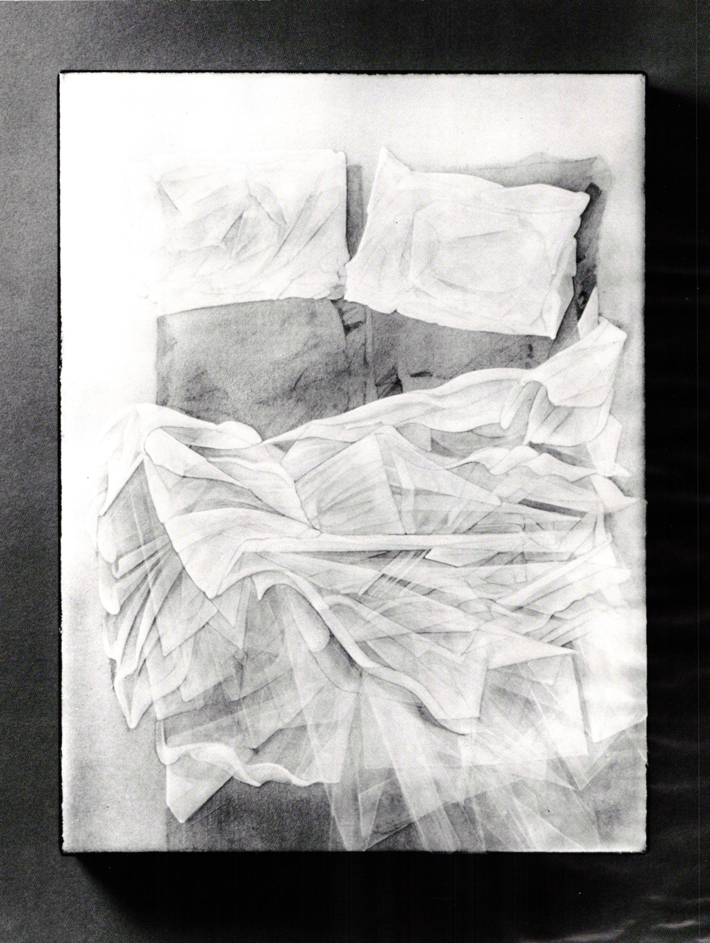 Moving away from the figurative, he is currently engaged in new work on larger steel plates, featuring bed sheets and pillows in various stages of disarray, as in Bed Sheets and Pillows #2, Inner Edges. The series is as free, fluid and provocative as the watercolors from his graduate school days. One cannot help but respond to their spontaneity, peacefulness and masterful handling of the diaphanous materials. During the course of the interviews for this article, Helwig admitted to being an elitist, and I would concur that the majority of his previous enamels convey that attitude.