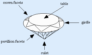 The beveled slope serves as a close-fitting seat for the pavilion of the facetted stone (2.1, 2.2).