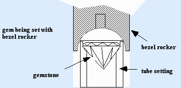 They may be set by hammering, burnishing, with pushers, punches or with a polished concave hemispherical punch called a bezel rocker. These tools may be bought or made in different sizes. The bezel rocker is rocked to and fro until the stone is set, or if the bezel wall is thin and speed is important, it is used as a punch and set in one blow (4.0).