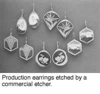 This is what I have done for my production line of champleve. Chemical millers use a sophisticated process to laminate a photo sensitive film onto the copper, then expose and develop the film with your designs and run it through a spray etcher. It is fast and keeps the mess out of your studio. For further information, please read through the footnotes, supply sources and bibliography listed below.