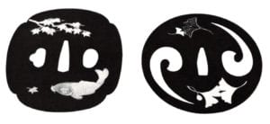 Ichiro Kawahito, Sword Guard. Gold damascene on iron, 5 x 8 x 7.5 cm each, 100g.