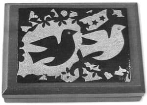 Shevis could work full time at painting and the collages and wood constructions he'd been doing in spare time. And I could concentrate on enameling. I'd inherited about a thousand jars of enamel, some copper and a marvelous furnace designed by my friend and teacher, Pauly D'Orlando, and built for her by Woodrow Carpenter. Pauly had been my best friend at Mass Art in Boston. When she married and moved to New Orleans, she became art teacher at a small private girls school where she found a small kiln and a good supply of enamels. With the help of Kenneth Bates' book, she rapidly learned enough to teach the girls in the school. In the following years, she produced some of the most beautiful enamels I've ever seen, and had a following of wealthy collectors in the area. That was before the enamel society or Glass on Metal, so her work wasn't shown or known outside Louisiana.