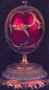 A conversation about what form the gift would take got around to distinguishing Benchmark pieces we'd seen in the past. Recently I had the privilege of being in the research offices of the L.A. County Art Museum while they were setting up the largest exhibit of Fabrege eggs ever displayed at that time. Now to me, this was the epitome of the jewelers art.