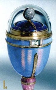 The re-introduction of Fabergé to Russia was celebrated with a gala event in the Kremlin armory in Easter 2001. The exhibits included Victor Mayer's most expensive egg for Faberge, the Moon Phase Egg. Production of the work took more than 18 months. The piece shows the phases of the moon in a rock crystal dome, while the hours are shown in a small viewing window made from the same material.