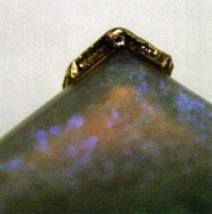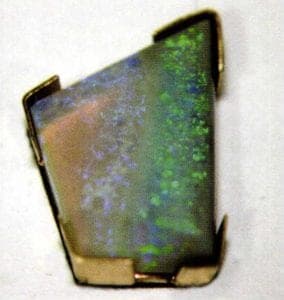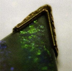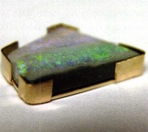 The second opposing corner is welded into place with a slight downward pressure on the opal. The opal is now tight and the other two corners can be welded with no downward pressure on the opal.