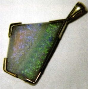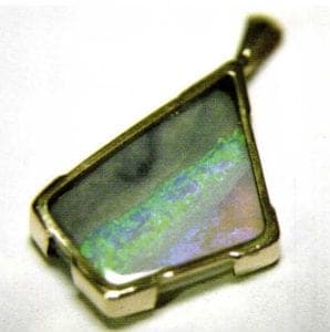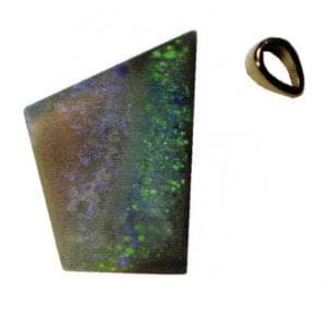 These are the parts I received: a loose chipped opal and a 14KY bail along with the instructions. I was billing on a straight hourly basis plus parts, so I wanted to make the most efficient use of my time. I also wanted a light frame to show the greatest amount of opal possible. I feel it's silly for someone to pay me to manufacture bar stock or bezel from grain when a manufacturer who does it for a living does it better and cheaper, so I used ready made stock.