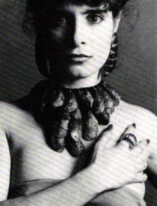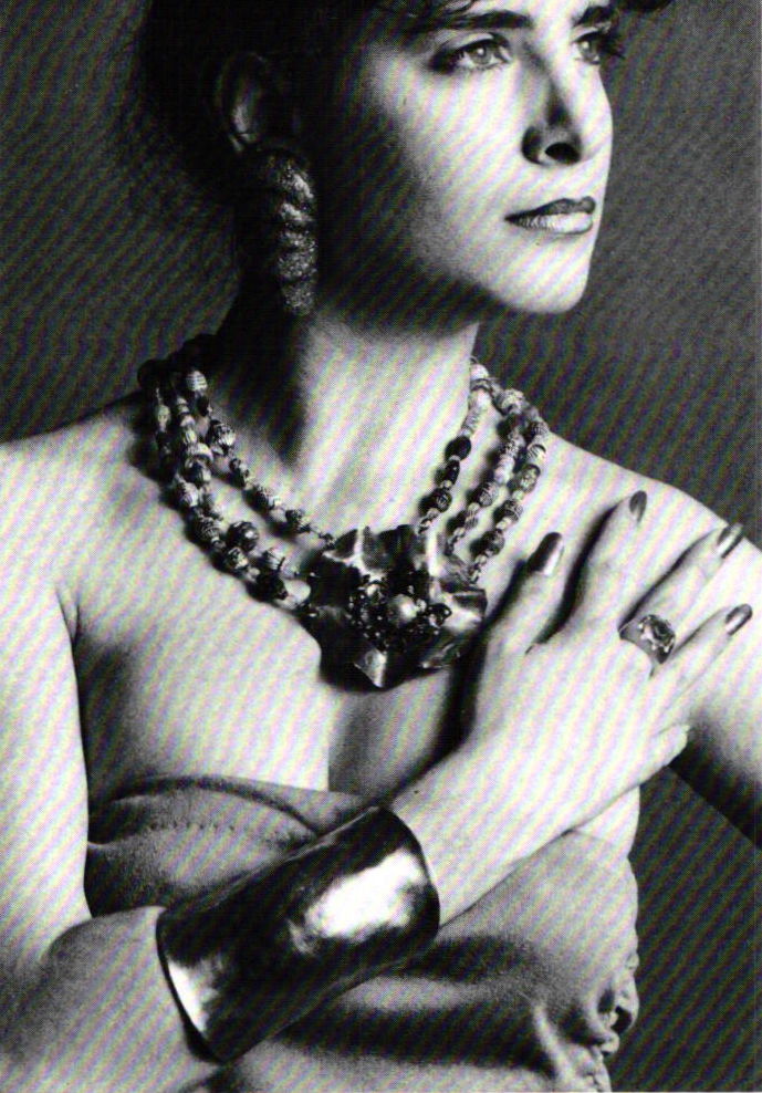 The authority of fashion as a visual convention is gladly accepted by everyone, yet we go to great pains in distinguishing it from theatrical costume. We believe that the street is the arena of reality not illusion. In looking at fashion, the pleasure of recognition is more satisfying than the pleasure of perceiving dramatic coherence or staged appropriation. In liberating jewelry from convention, maybe we should examine more closely its efficacy as costume and its catalytic role in body drama.