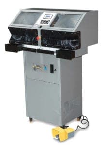 Offering a three-step filtration system, the Durston Airmax 2200 is a fully enclosed, extraction polishing machine. Operating at 80 decibels, the polishing machine features a ¾ hp, variable speed Baldor motor that can be adjusted to suit the material being polished, saving time as well as money on consumables. Featuring a 1,700 cfm-rated particulate suction motor, the system has wheels that allow the unit to be easily transported, and two drawers on either side of the stand that provide storage. The machine offers forward and reverse control, and a foot control comes standard. Easily removable, tempered, and scratch-proof glass separate the user from the two lighted chambers. Contact: Otto Frei, 126 2nd St., Oakland, CA 92607; 1-800-772-3456; fax 510-834-6217; e-mail info@ottofrei.com; ottofrei.com.