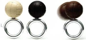 Jewelry creations are somewhat livelier if they don't rely on the official logo, but are more liberal with the way they launch the athletic idea in word plays or commemorating earlier victories or defeats. A case in point is the retrolook miniballs thought up by the jewelry manufacturer Niessing made of genuine goat's leather that fans can wear as key ring pendants or finger rings.