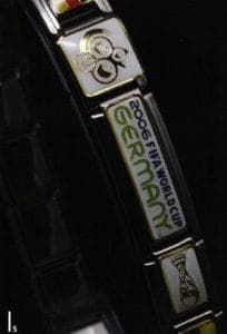 There are only a few manufacturers such as Schumann Design in Delmenhorst, Germany or the watch manufacturer Casio that have been able to snap up agreements for manufacturing world championships products with the official logo Schumann Design has a license from the world football association to produce caoutchouc bangles in the colors of the German flag and the label "2006- FIFA World Cup", chains with the world championships cup and pendants with the FIFA emblem. Many a fan will wear products someplace visible on their bodies for Germany's football - but, in terms of design, these accessories are pretty tame.