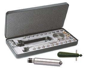 The Foredom AllSet Master Stone-Setting Kit includes prong, pave, channel-cutting guides and a fixture that attaches it to a Foredom No. 30 handpiece. The kit is capable of quickly being set-up in a multitude of ways to complete a variety of stone setting tasks.