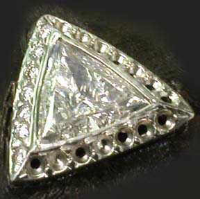 Holman carved the waxes and had them cast in platinum. Notice he carved much of the finished detail into the wax, including preliminary prongs that will become the beads for the side diamonds.