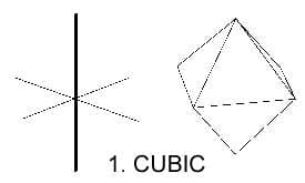 The isometric system is comprised of three equal length axes that are all at right angles to each other. This system is also called the cubic system. Think of a cube of sugar. Gemstones that crystallize in the cubic system include diamond, garnet, spinel and fluorite.