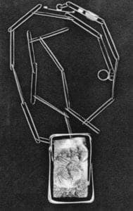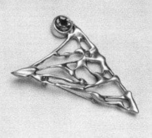 In spite of those charms and values, gold has gone out of fashion among many, even most, art metalworkers today. The steeply rising cost over the last decades has certainly been one factor, but another no less certainly has been the age's restless drive to experiment in all the arts, to do things never done before, to be new at all costs. In metalwork for some time now, that has translated as collages, derived ultimately from Picasso and Braque in the early years of the century and the use of metals formerly rejected by jewelers as "base" in both senses.
