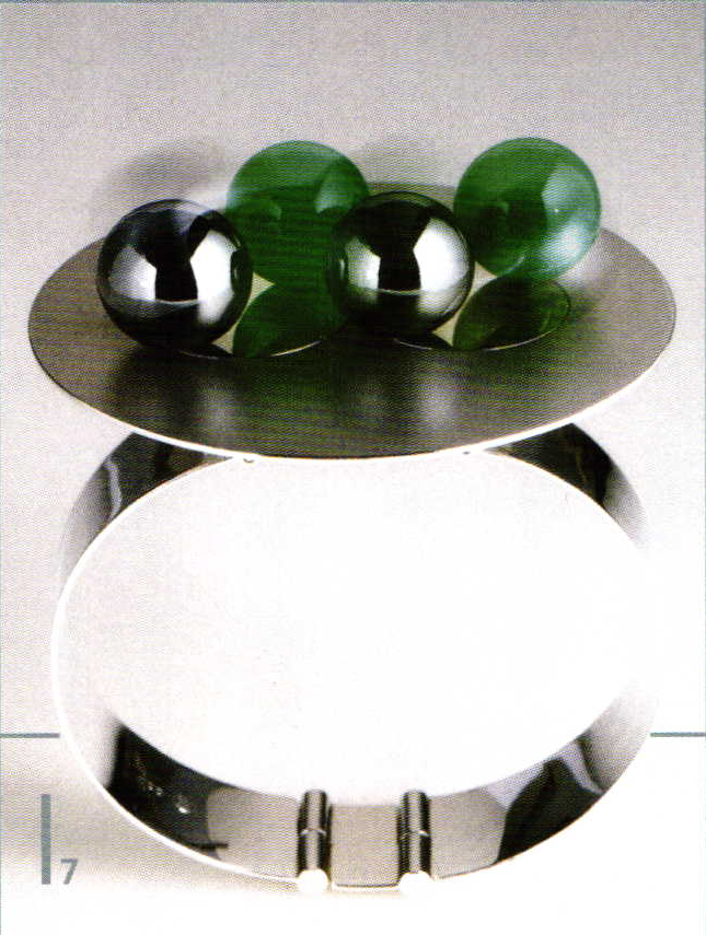 Bracelet, 1987. Stainless steel, synthetic white and synthetic blue spinel. Kunstgewerbemuseum (Arts-and-Crafts Museum) SMPK, Berlin