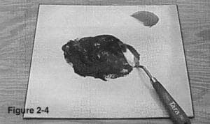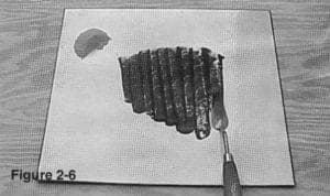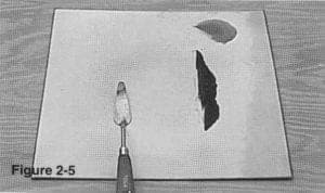 - Mix the pigment and frit in a circular motion with the spatula, as in Figure 2-4. When it looks well mixed, scrape it into a row, as in Figure 2-5.