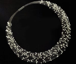 The necklace "Galaxie" is one of the first jewelry pieces that Birgitta Schulz and her company pars pro toto showed at their first trade far exhibition about ten years ago. And it is one of the first jewelry pieces that earned pars pro toto its renown Now - a whole decade later - "Galaxie" is still a big seller within the collection of over 1000 different products offered by the Freiburg-based company. The special thing about "Galaxie" is the deliberate "strung apart" nature of the many tiny pearls that are strung on thin steel wire and set with a certain distance between them. As if the viewer were gazing into a starry night sky, the necklace's many small Chinese freshwater pearls gleam like a glimpse of the galaxy at the wearer's throat. This design now remains as popular as it once was fresh.