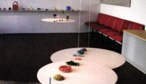 You won't find any jewelry behind glass at Oona. There are no showcases - the jewelry is presented on suspended, round tables, swings in air bubbles from the ceiling or perches proud in flower pots. Visitors are encouraged to touch the creations and to try them out. Colored, smaller objects made of plastic and collages consisting of the most varied of materials await visitors. Moreover, the manner in which the jewelry is intended to be worn is in some cases quite mysterious. Finding this out is quite a treasure hunt, as many exhibits are initially more reminiscent of colorful toys than of precious gems. Experimentation and tactile discovery reduce our inhibitions and create sensual experience. The work makes communication easier, discussions arise and laughter spreads.