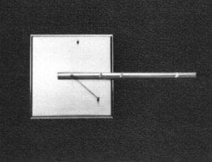 By the fall of 1979, Griffin had internalized his previous knowledge of machine-tool processes and achieved what he considered to be a breakthrough in Construction 79-7 (1979). This small, tripod structure, with its milled, flat, rectangular surface displaying some of the residual cutouts from the milling process, carries forward the ideas he experimented with at the Platinum Workshop. The tabletop configuration penetrated by the vertical rods also adds a different dimension to his work with its strong, linear, upward movement and spatial presence. But something new was occurring in his working methods. Instead of adhering to a totally rational and systemic approach in constructing this piece, Griffin began to play with forms. For example, the sine curves were not "designed" nor mathematically conceived and then placed within a preconceived schema. Chance and random juxtapositions became increasingly important to him as he began to intuitively position his forms.