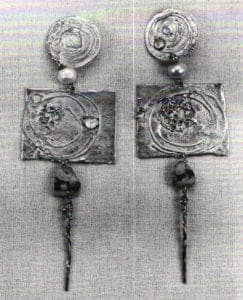 At this time, her work was very influenced by Scandinavian design. She Favored smooth, polished surfaces and simple hard-edged Forms. She was aware of the jewelry being made in America' as she was given a subscription to Craft Horizons. Although she was not directly influenced by what she saw in it, she admired the work of Sam Kramer and many others.