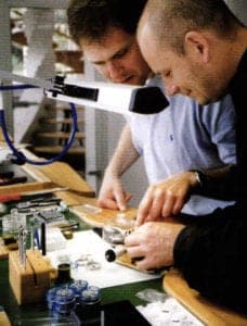 Critical gaze: Rainer Brand (right) is included in every aspect of production. Here we see him talking to the master watchmaker Alexander Füssl