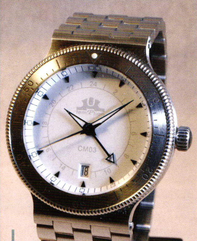 The automatic watch CM03 by Temption with second time zone on a 24 h basis. Nice extra: an onyx sparkles on the crown
