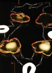 Fascinated by the interplay between transparency and light, Wibke Haase prefers to use Bernstein for her creations. A necklace made from discs of amber and blackened silver