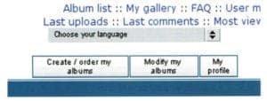 Once you have entered Admin Mode, you will see a new toolbar, located below the language selection box. This toolbar has links allowing you to create and order personal albums, modify existing albums, and edit information in your profile. To create a new album, click the box on the left, marked 'Create/Order My Albums' to begin the album creation process (Figure 6, below).