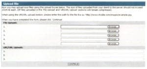To upload directly from your hard drive, click 'Browse' next to one of the upload text boxes, search for and select your file, and click 'OK'. This will place the direct path to your file in the text box. Users can upload up to five files at one time; for additional files, begin the process again. To retrieve and upload files located elsewhere on the internet, type, or cut and paste, the direct URL into the text box located in the URI/URL upload section. Up to three URLs can be listed for upload at one time. To upload more than three URLs, repeat the process. Once you have listed all the files to be uploaded, click the 'Continue' button.