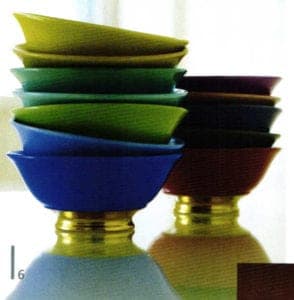 Living Venetian glass in shining colors; baskets and weave work; bast mats and small, woven furniture; African tribal art is enhanced by modern classics; hand-formed cutlery; archaically formed ceramics; dark wood; leather footstools and seats.