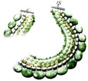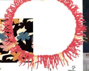 Jewelry Materials with an ethnic touch; horn; brown and vivid wooden Pearls; shiningly dyed, colored parchment jewelry; gold and turquoise; mussel and mother of pearl pendants; medallions and amulet jewelry; amber and coral jewelry.