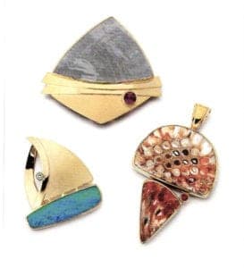 Patrick Murphy grew up in southwest Minnesota. The lush nature of the swamps rivers and lakes that he rambled in his childhood continues to influence his designs today. The qualified jewelry designer and gemologist is primarily devoted to unusual gemstones, which he places in settings by hand. His jewel designs are somewhat reminiscent of Art Deco. The stone is always the focus of attention, with the setting restricted to the function of a stage for showcasing the gemstone itself . The artist lives in Minneapolis.