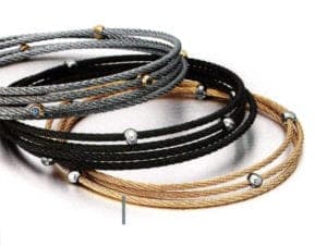 Behind the brand The Touch is Steven Edward. Since the late 70s The Touch has made a name for itself primarily with its cable designs. The cable bracelets are available in a choice of yellow and white gold, as well as titanium and stainless steel. Accents are set by diamonds, sapphires, rubies or emeralds. Matching earrings are available to accompany the cable design bracelets.